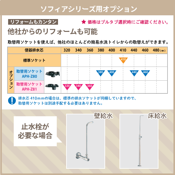 ・出品商品のセット内容に、止水栓は含まれておりません。標準の排水ソケット(排水芯:410mm用)は、付属しております。