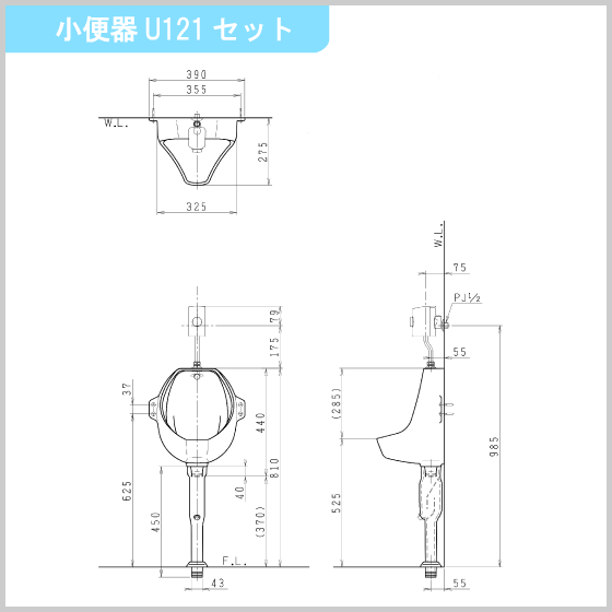 小便器 壁掛小便器・フラッシュバルブセット U121/BW1 Janis ジャニス