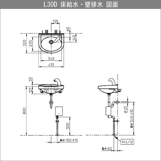 ・手洗器寸法 幅:410mm x 奥行:320mm x 高さ:154mm