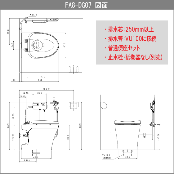 ・ FA8の標準排水芯は250mm以上です。