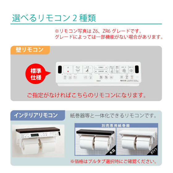 ※インテリアリモコン選択時は、インテリアリモコン専用紙巻器等が必要です。