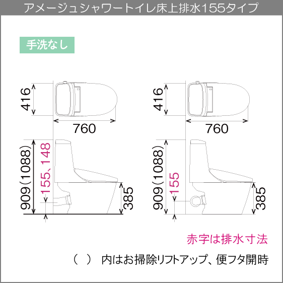 ・ 『壁排水(床上排水)』仕様、排水芯(高さ):155mmです。