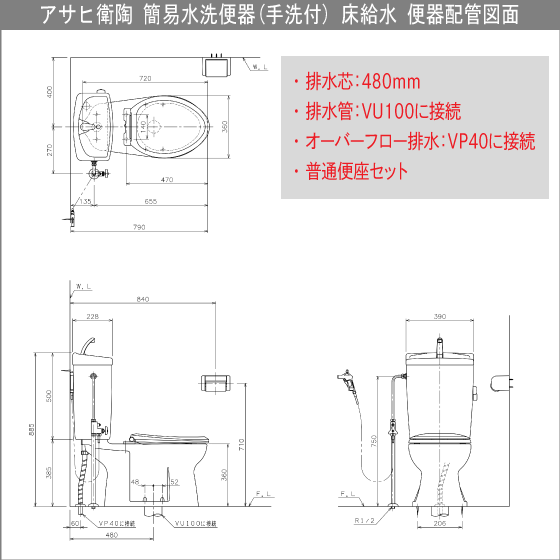 ・ アサヒ衛陶 簡易水洗トイレ サンクリーン(手洗付) 普通便座セット