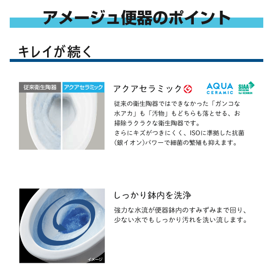 ・ 「ガンコな水アカ」も「汚物」もどちらも落とせるアクアセラミック仕様。