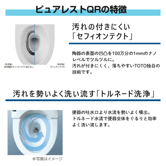 ・ 便器の汚れを勢いよく洗い流す「トルネード洗浄」方式