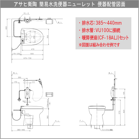 ・ アサヒ衛陶 タンクレス式簡易水洗トイレ ニューレット 暖房便座セット