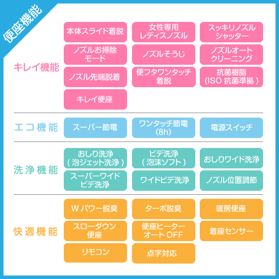 ・ 便器表面の凹凸面に詰まり、汚れが堆積するのを防ぐ「トイレコート」を採用。キレイが続きます。