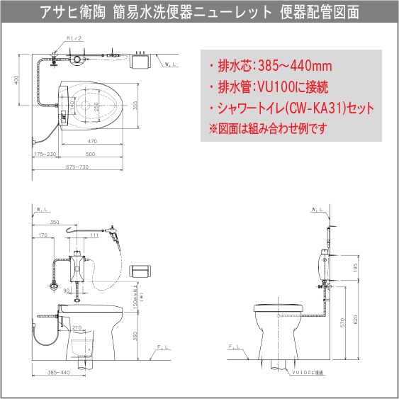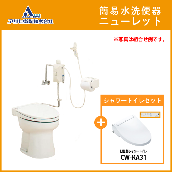 簡易水洗便器 簡易水洗トイレ ニューレット(フラッシュバルブ式) LIXIL製シャワートイレ(壁リモコンタイプ)セット AF50BN,CW-KA31A アサヒ衛陶 タンクレス