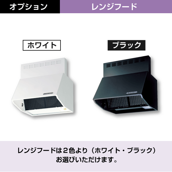・ レンジフードのカラーは『ホワイト』、『ブラック』の2色からお選びいただけます。