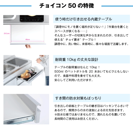 ミニキッチン チョイコン50(扉カラー:マット) 間口90cm フルタイプ CSS090FJTK2L,CSS090FJTK2R 亀井製作所 900mm