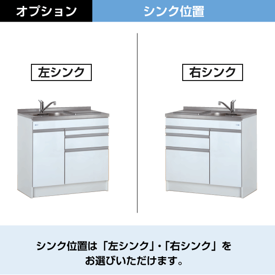 ・ 水槽(シンク)位置は、『右シンク』か『左シンク』のどちらかをお選びください。