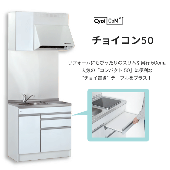・ 奥行50cmのセパレートタイプキッチン。ミニキッチンからのリフォームにおすすめ。