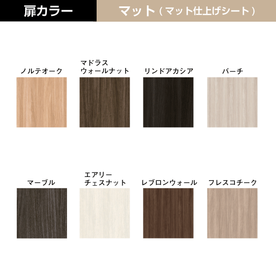・ 扉はマット仕上げ、扉カラーは全8色から選べます。