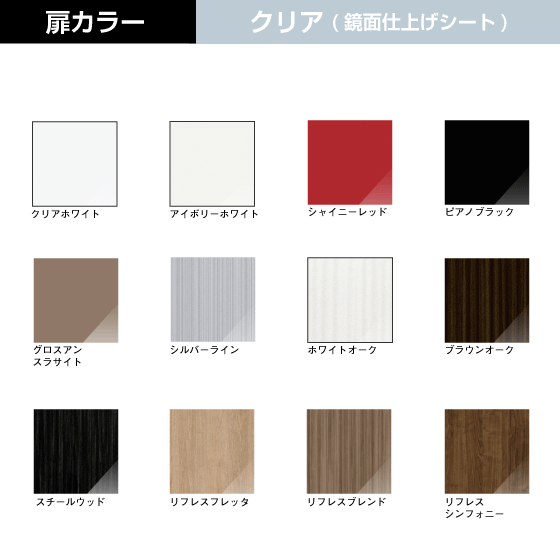 ・ 扉は鏡面仕上げ、扉カラーは全12色から選べます。