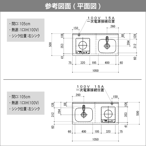 ・ 『1口IHヒーター(100V)』、『1口ガスコンロ』、『熱源なし』からお選びいただけます。