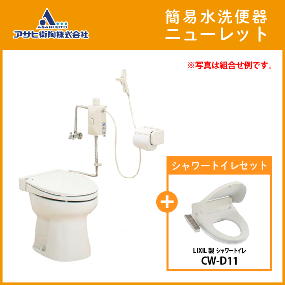 簡易水洗便器 簡易水洗トイレ ニューレット(フラッシュバルブ式) LIXIL製シャワートイレセット AF50BN,CW-D11 アサヒ衛陶 タンクレス
