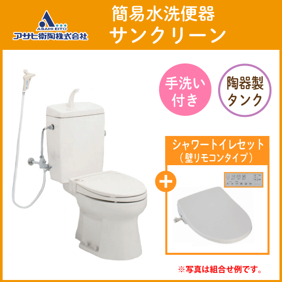 簡易水洗便器 簡易水洗トイレ サンクリーン(手洗付) 温水洗浄便座(リモコンタイプ)セット AF450TR931 アサヒ衛陶