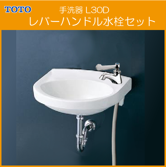 平付壁掛手洗器 水石けん入れ付(床給水・床排水) ハンドル水栓セット L30DM 洗面器 小型 洗面所 TOTO